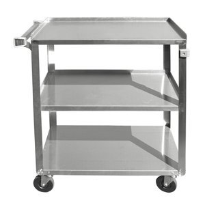 - These carts feature a three-tier stainless steel design featuring 15-1/2 x 24 edges shelves.